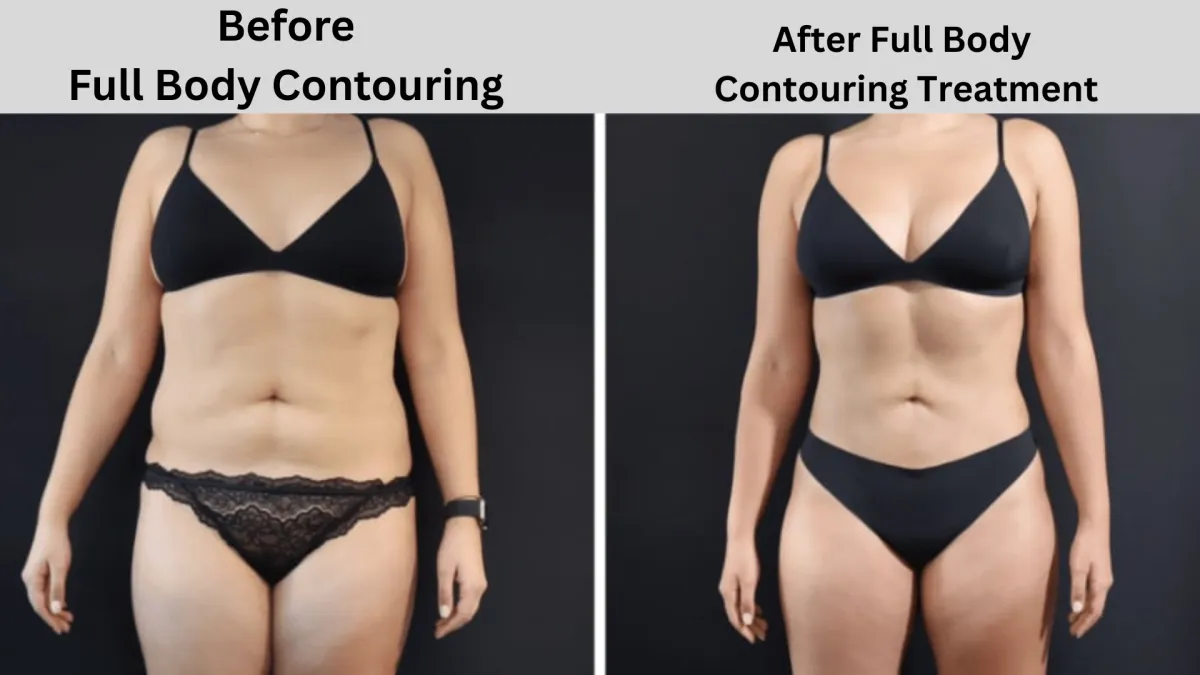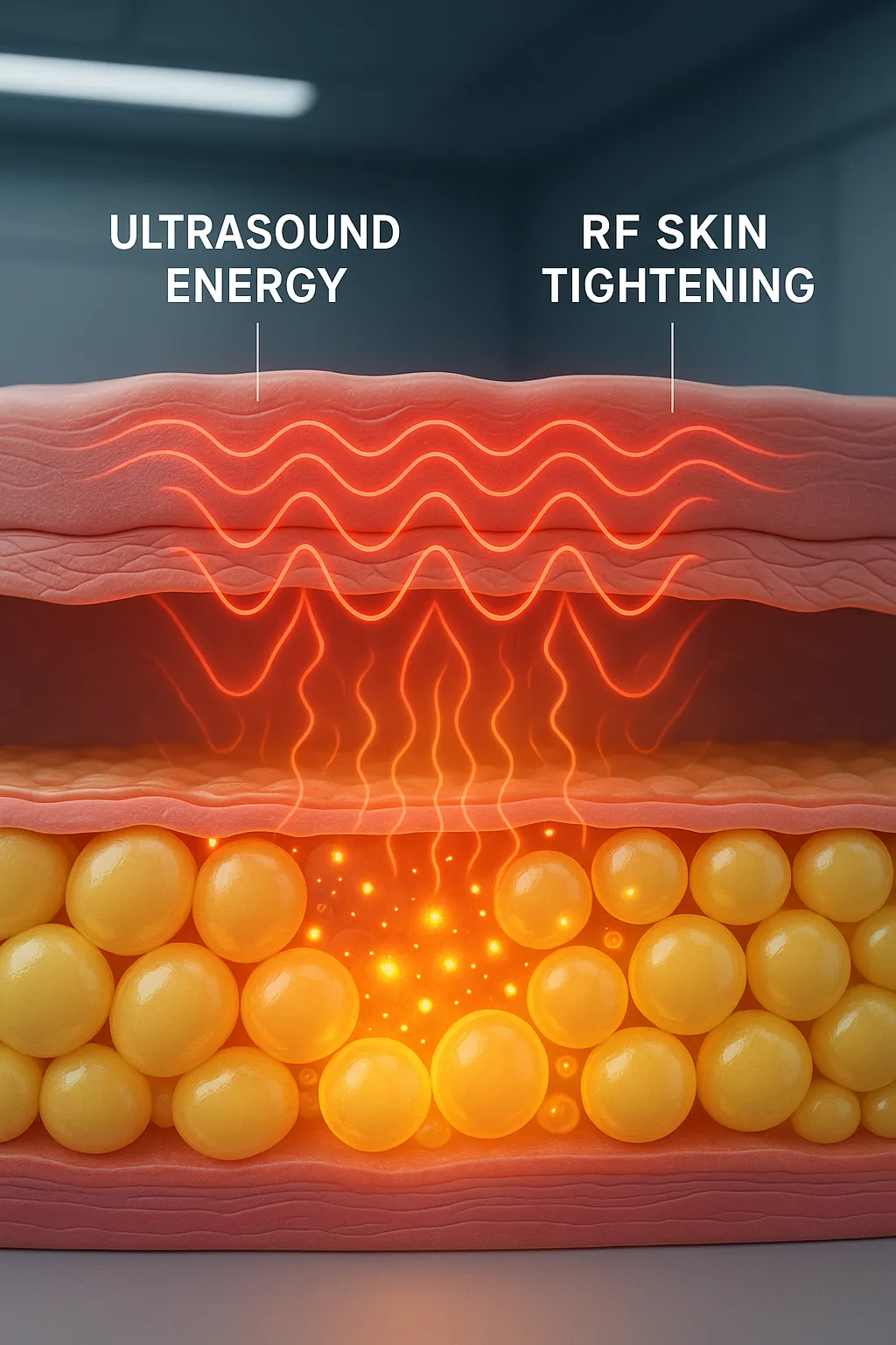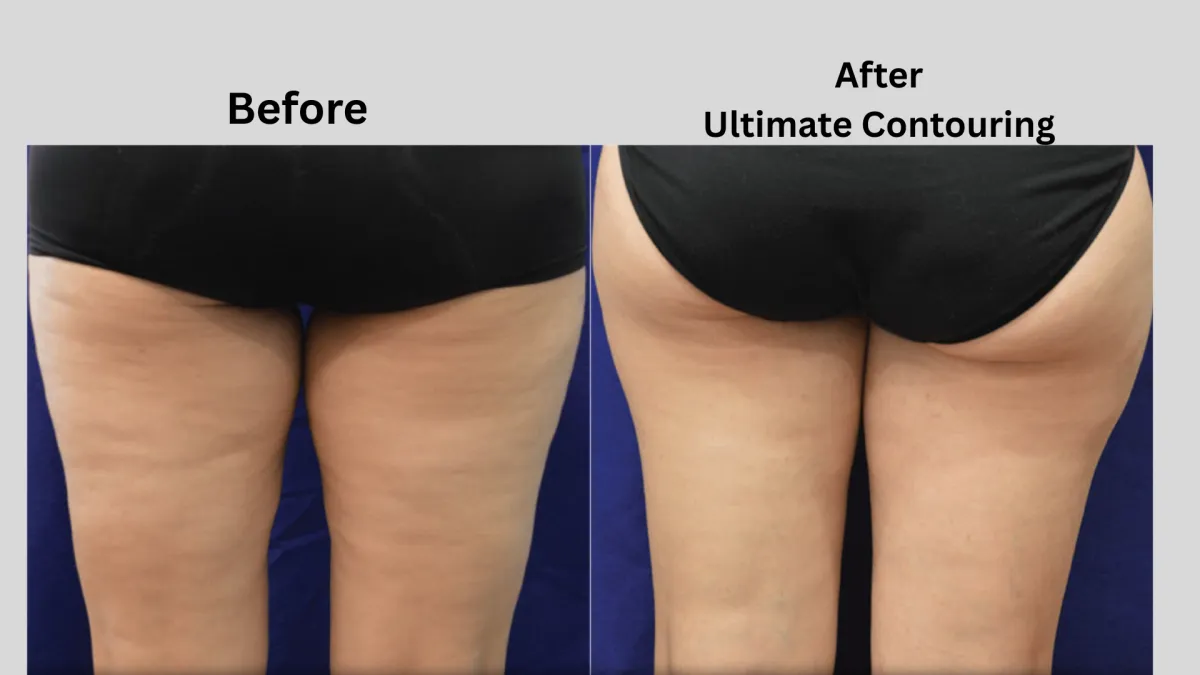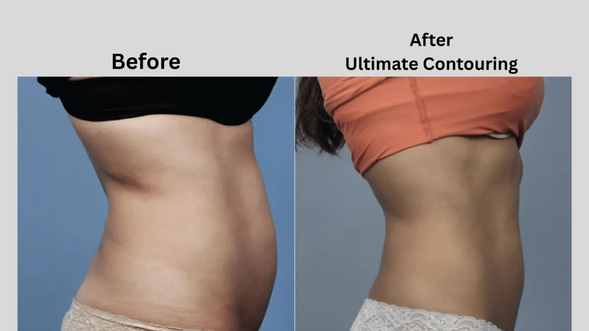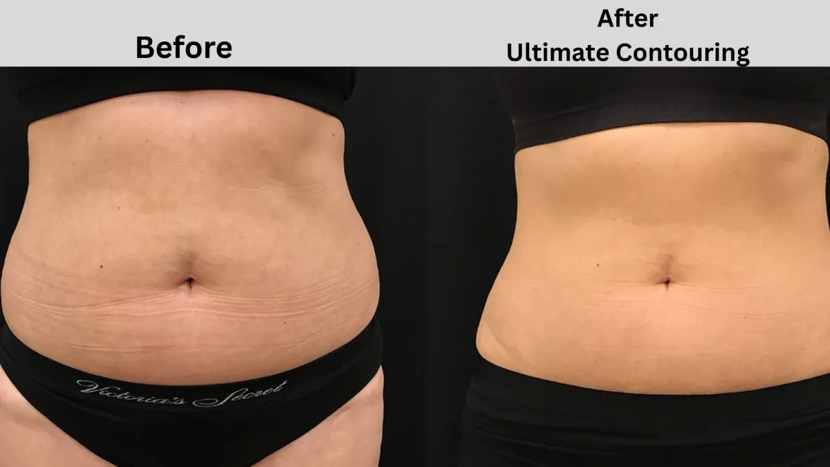 Ultimate Contour is a non-invasive body sculpting service using FDA-cleared ultrasound and radiofrequency technology to target stubborn fat and tone areas like the tummy, thighs, and arms.
